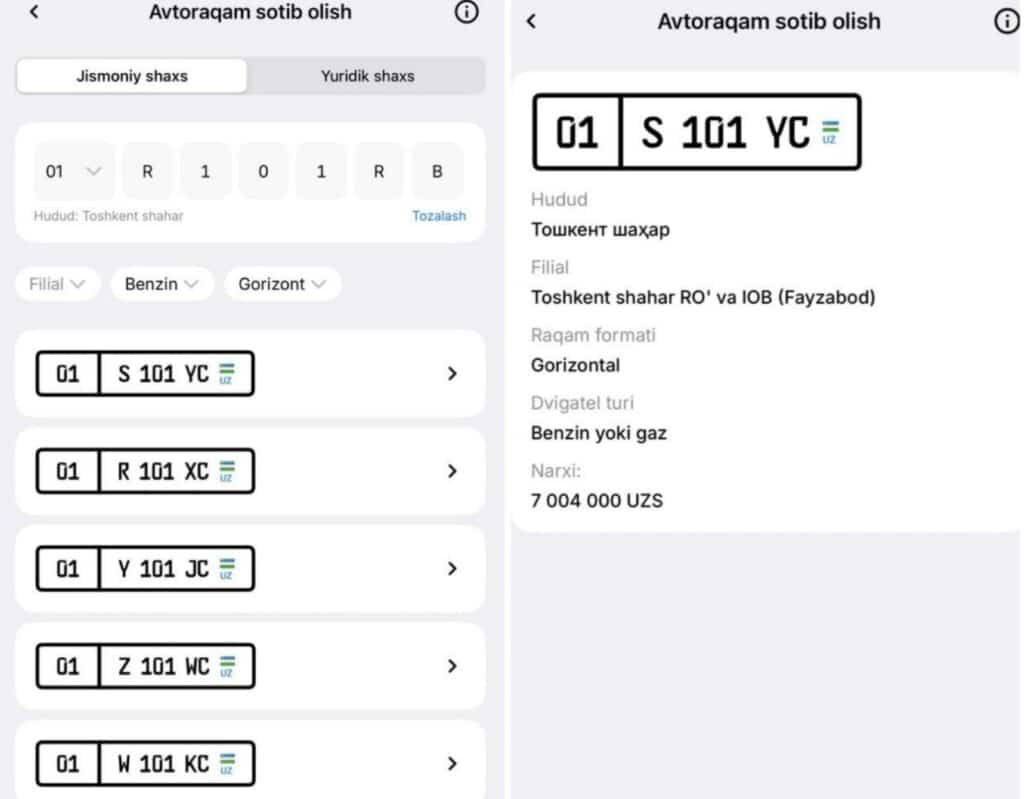 Для физических лиц стоимость составляет 17 базовых расчетных величин (около 7 млн сумов), для компаний — 25 БРВ (примерно 10,3 млн сумов).