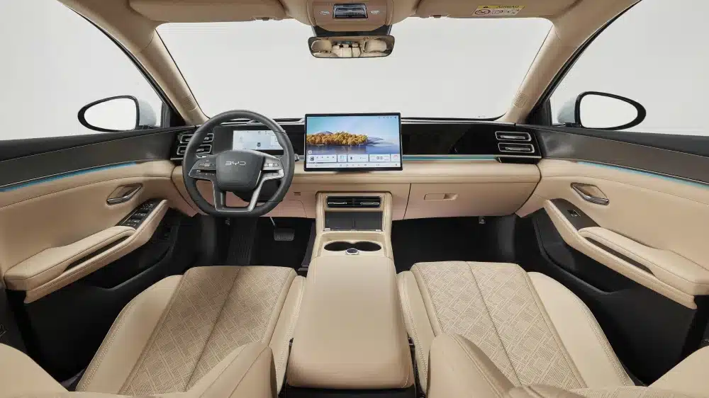 - Поворотный центральный экран 15,6″ на платформе BYD DiLink, беспроводная зарядка 50 Вт.