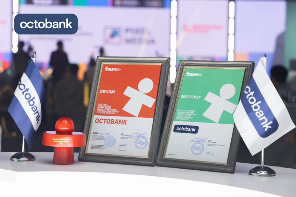 На фестивале Octobank был удостоен награды «За лидерство в создании удобных цифровых решений для онлайн-бизнеса в Узбекистане в 2025 году». Высокое признание от Маркетинговой ассоциации Узбекистана стало подтверждением лидерских позиций банка в сфере цифрового банкинга и его вклада в развитие бизнес-экосистемы страны.