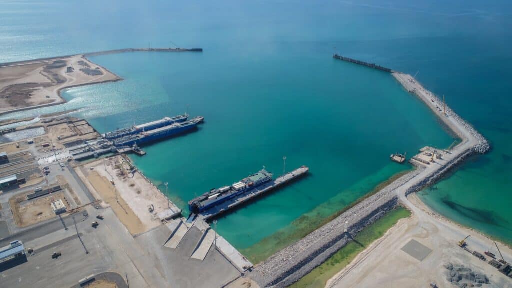 Порт Курык находится на побережье Каспийского моря в Мангистауской области РК. Морская гавань работает с лета 2018 года. В ее состав входят логистический центр, паромный комплекс, который способен перевозить до 54 вагонов.