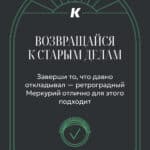 Чтобы пройти ретро-Меркурий без потерь, Kursiv Uzbekistan подготовил практичные карточки — с тем, что точно не стоит делать в эти дни, и с тем, на чем, наоборот, можно выиграть.