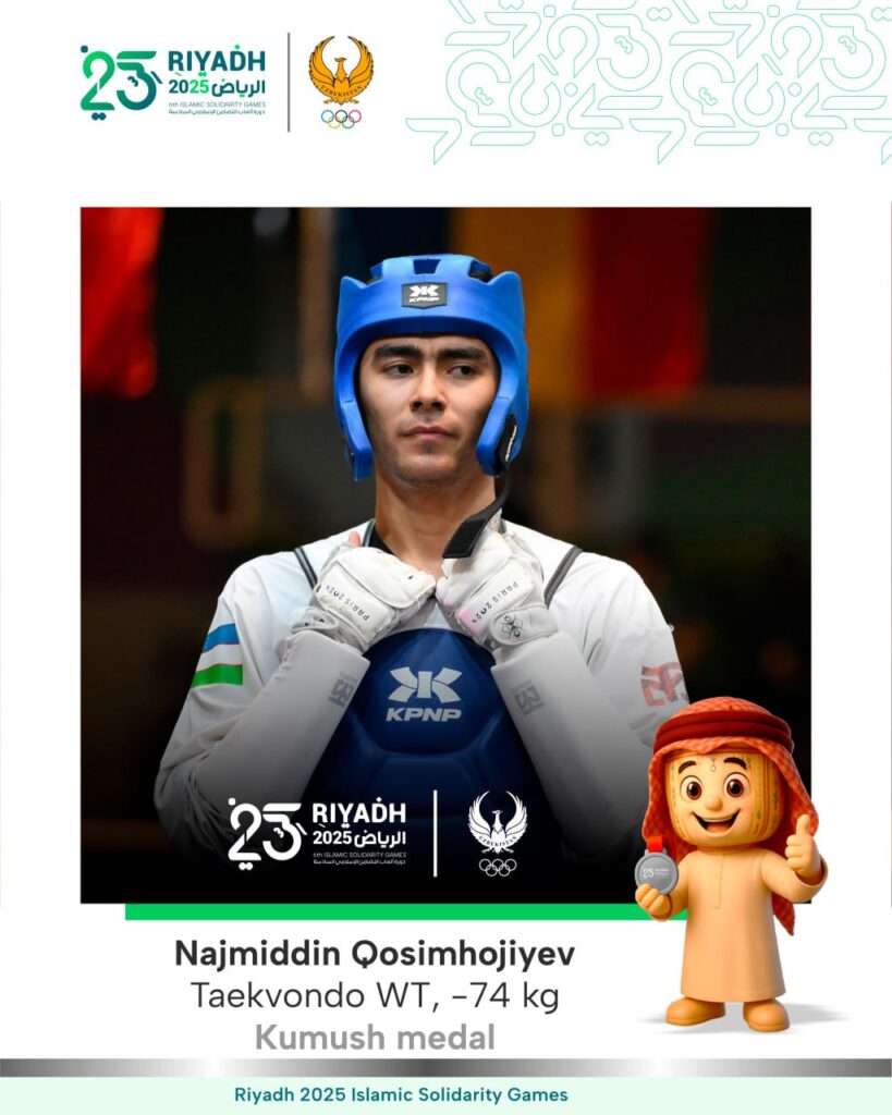 Несмотря на итог, Косимходжиев завоевал серебряную медаль Игр исламской солидарности, подтвердив статус одного из самых перспективных представителей узбекского таэквондо.