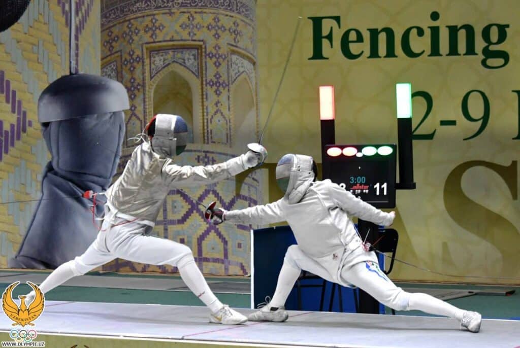 В мужских соревнованиях на шпагах финальный бой стал внутренним противостоянием представителей Узбекистана. В поединке между Мейирханом Тимуровым и Жавохиром Нурматовым победил Тимуров, завоевав двадцатую золотую медаль делегации.