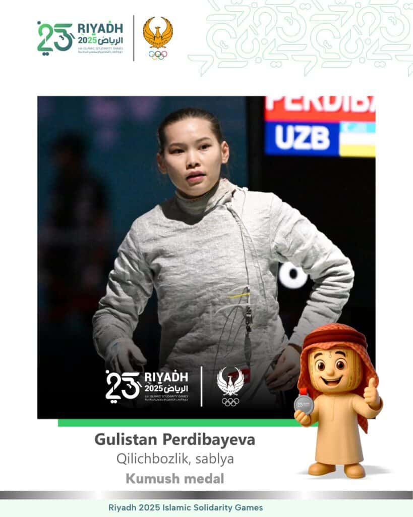 Сборная Узбекистана продолжает успешное выступление на Играх исламской солидарности в Рияде. В таэквондо, фехтование и в легкой атлетике узбекистанские спортсмены завоевали золотые и серебряные медали, закрепив позиции страны в общем медальном зачете.
