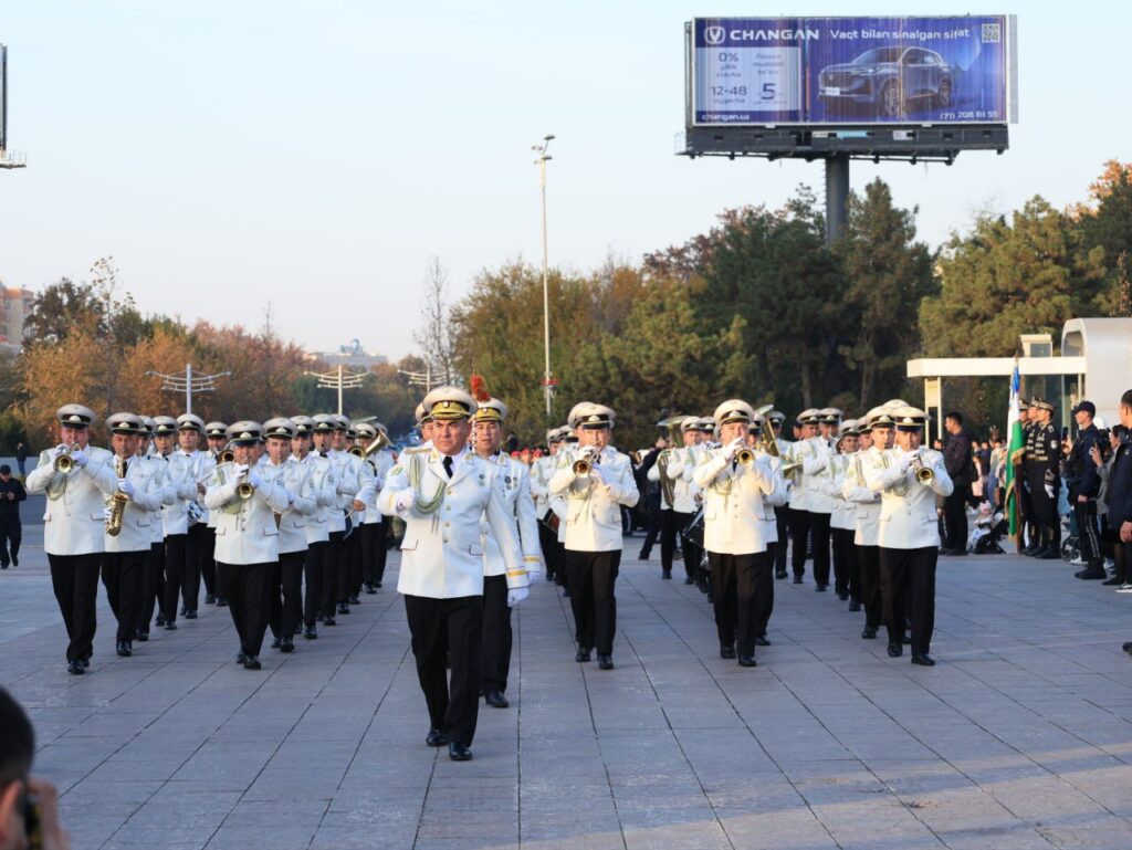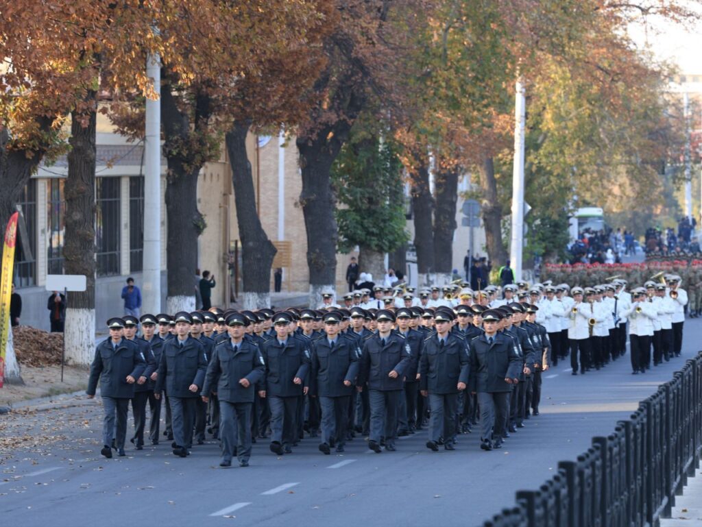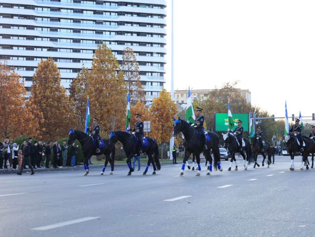 В столице Узбекистана на главных улицах прошли показательные пешие марши подразделений Министерства обороны и Национальной гвардии. Мероприятия посвящены 34-летию принятия Государственного флага страны.