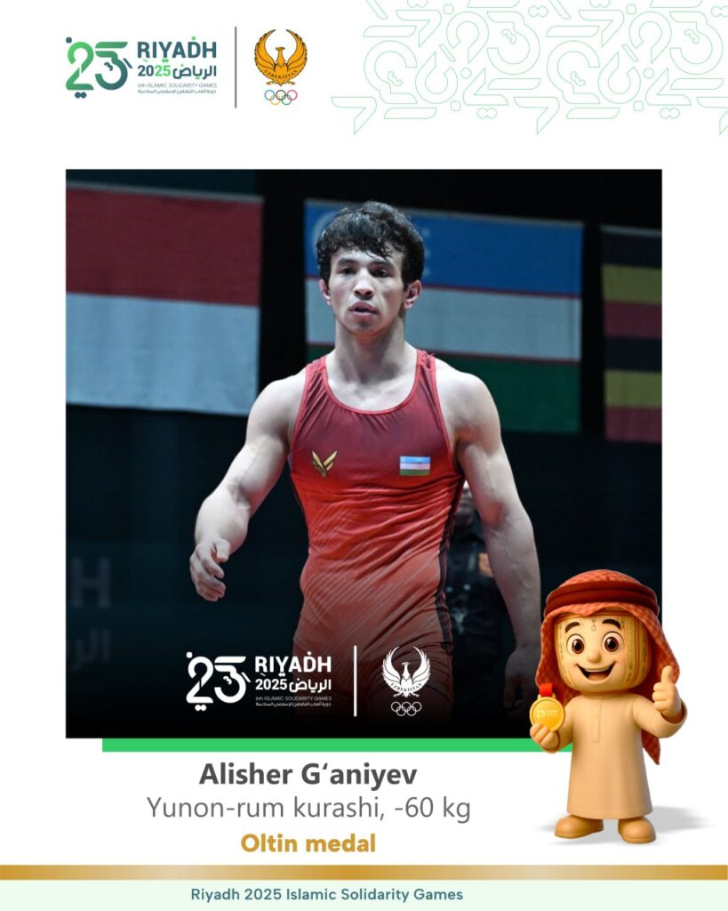 Сборная Узбекистана продолжает успешное выступление на Играх исламской солидарности в Рияде. Представители греко-римской борьбы пополнили медальный актив страны тремя наградами.