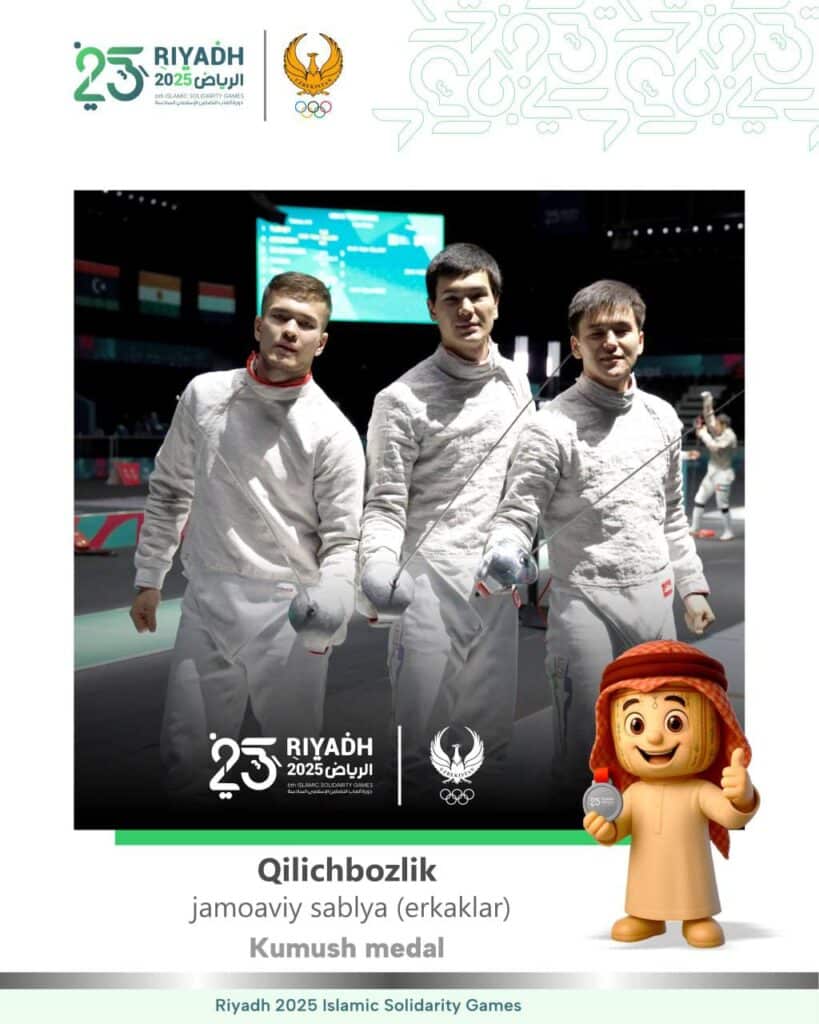 Сборная Узбекистана успешно провела очередной день на Играх исламской солидарности. Женская команда по шпаге уверенно обыграла Турцию и завоевала золотую медаль. Тогда как мужская сборная по сабле и легкоатлетка Угилой Норбоева завершили свои выступления на втором месте.