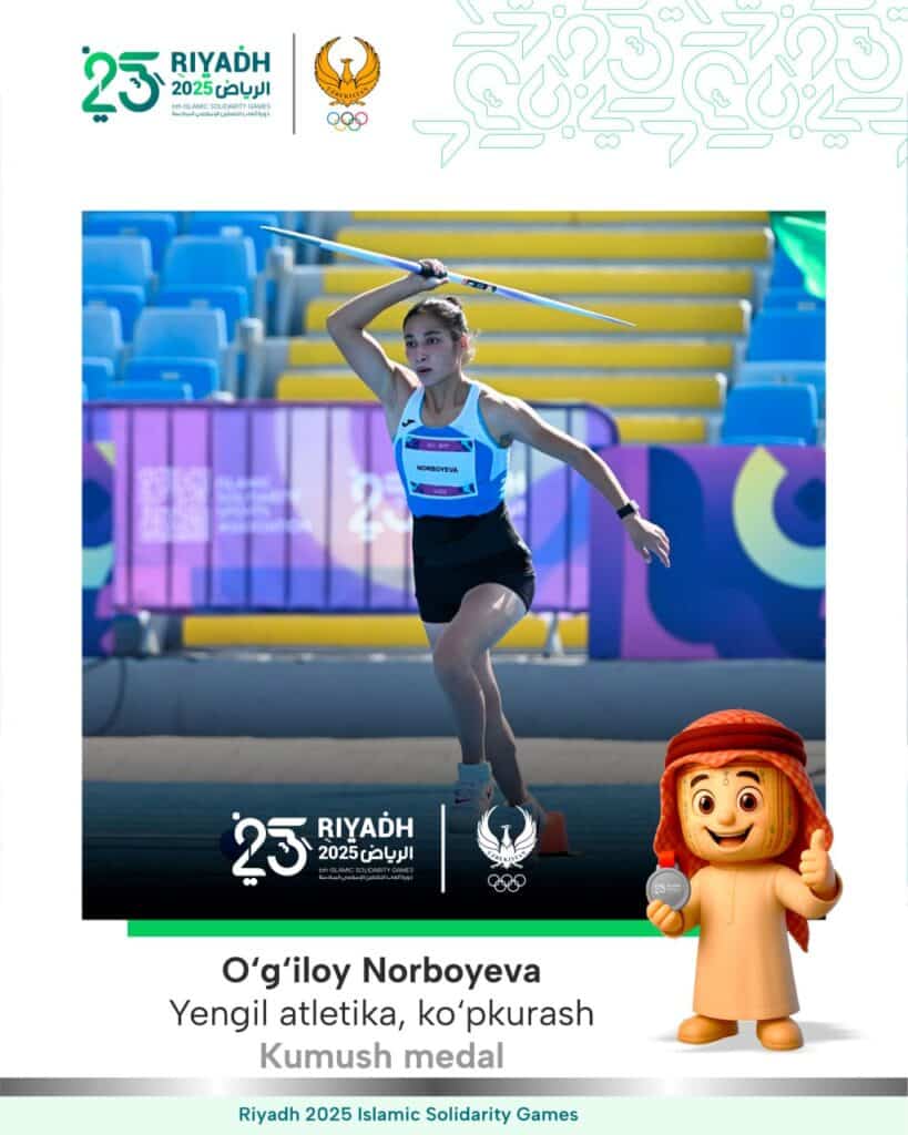 В программе легкой атлетики женское семиборье принесло сборной еще одну награду. Угилой Норбоева успешно прошла все семь дисциплин, показав стабильные результаты в течение всей соревновательной программы. По итогам выступления она заняла второе место и стала обладательницей серебряной медали.
