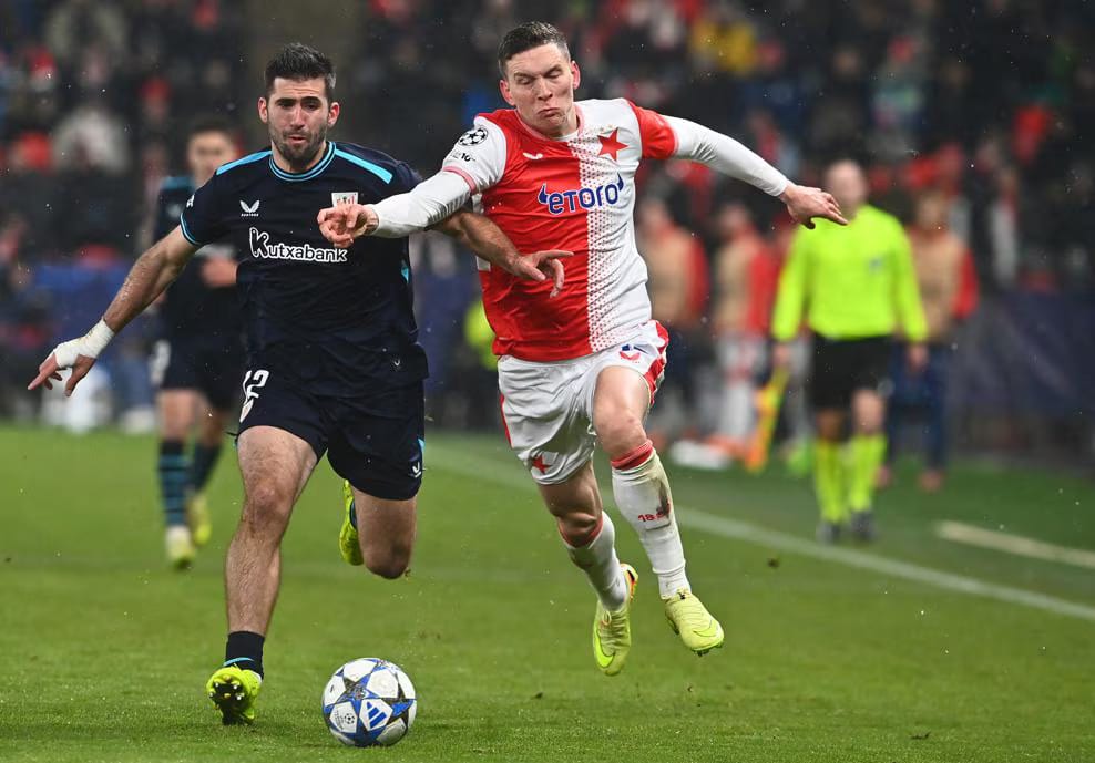 В Праге команды провели жесткий и рваный матч. «Атлетик» начал активнее, но «Славия» выровняла игру. Множество фолов сбивали темп, судья часто доставал карточки.