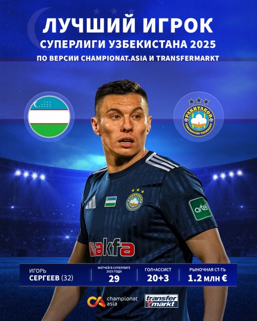 Кроме того, Championat.Asia и Transfermarkt также представили символическую сборную Суперлиги Узбекистана. В нее вошел голкипер «Пахтакора» Владимир Назаров, который провел 15 матчей на «ноль» из 22 и пропустил всего 11 голов за сезон.