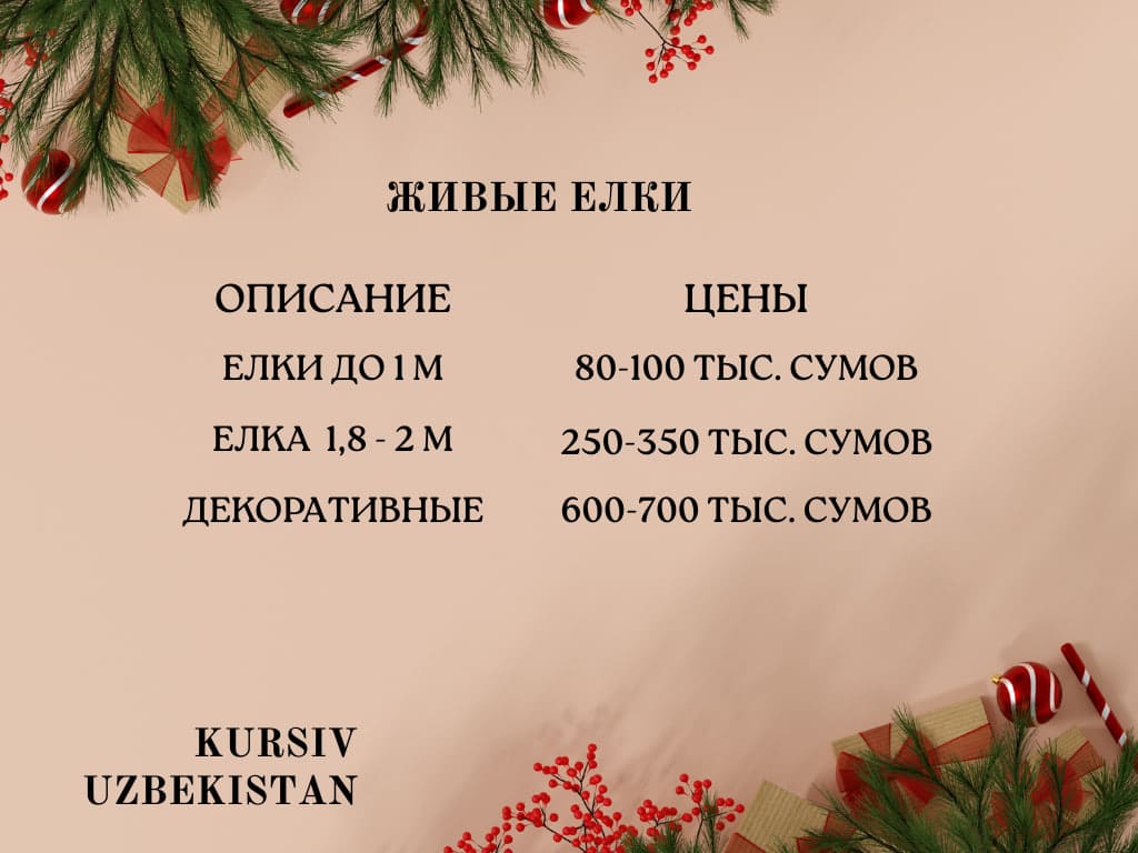 В результате живая елка с декором обходится в диапазоне 350-500 тыс. сумов, в зависимости от размера дерева и места покупки.