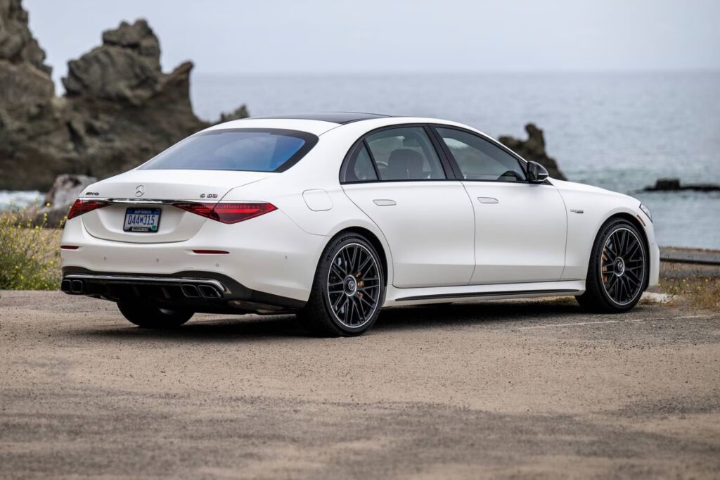 Задняя подруливающая ось присутствует, но в AMG-версии доступен только минимальный угол поворота в три градуса, тогда как у обычного W223 возможны и более радикальные настройки.