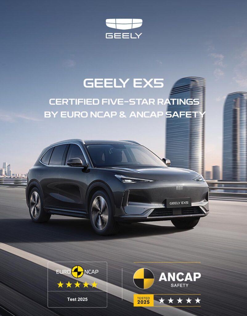 На этом фоне продуктовая повестка Geely усиливается «витринными» моделями: Geely EX5 стал первым автомобилем марки с двойным 5-звёздочным рейтингом безопасности одновременно по Euro NCAP и ANCAP, получил международные признания в дизайне, включая Torino Automotive Design Award, и в Бразилии удерживал лидерство в категории электрических C-SUV четыре месяца подряд. Для plug-in направления Geely EX5 EM-i (на ряде рынков модель проходит под названием Starray EM-i) получила подтверждение GUINNESS WORLDRECORDS за рекордно низкий расход топлива в серийном PHEV-SUV тесте (верифицировано 3,83 л/100 км в заявленных условиях) и в ноябре вошла в число самых продаваемых PHEV в Австралии, что подчёркивает устойчивость спроса на ключевых экспортных рынках.