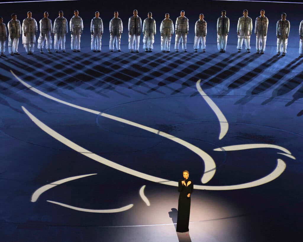 Постановка церемонии была выстроена вокруг идеи гармонии — между природой, человеком и современным миром. На арене сменяли друг друга театрализованные сцены, световые инсталляции и масштабные хореографические номера, отсылающие к истории Италии, ее искусству и роли спорта в объединении людей.