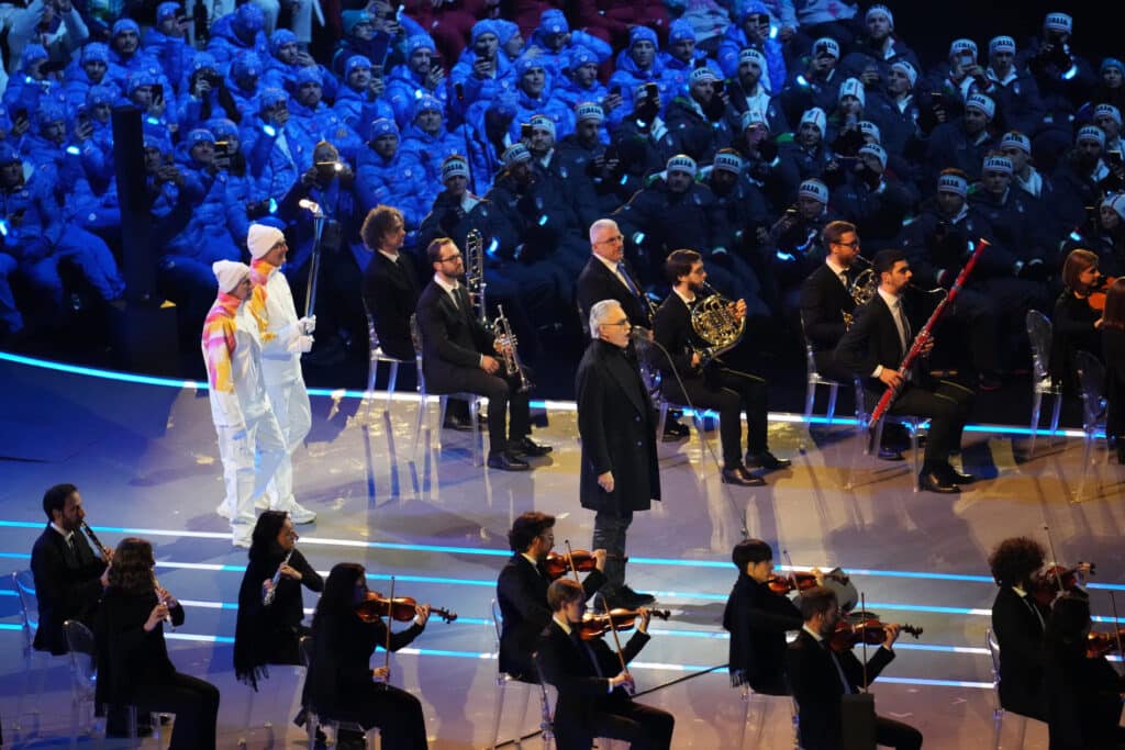 Итальянскую музыкальную традицию на церемонии представил легендарный тенор Андреа Бочелли, чье выступление сопровождалось визуальными образами горных пейзажей и архитектурных символов страны.