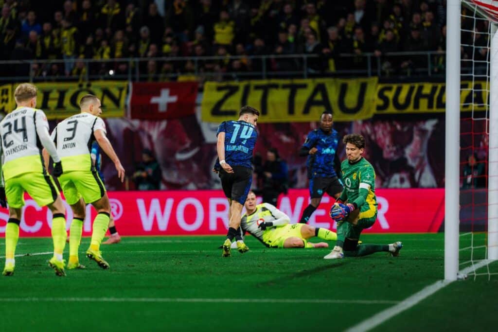 Далее хозяева продолжили давление. На 40-й минуте Баумгартнер оформил дубль, завершив быструю атаку точным ударом в ближний угол.