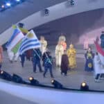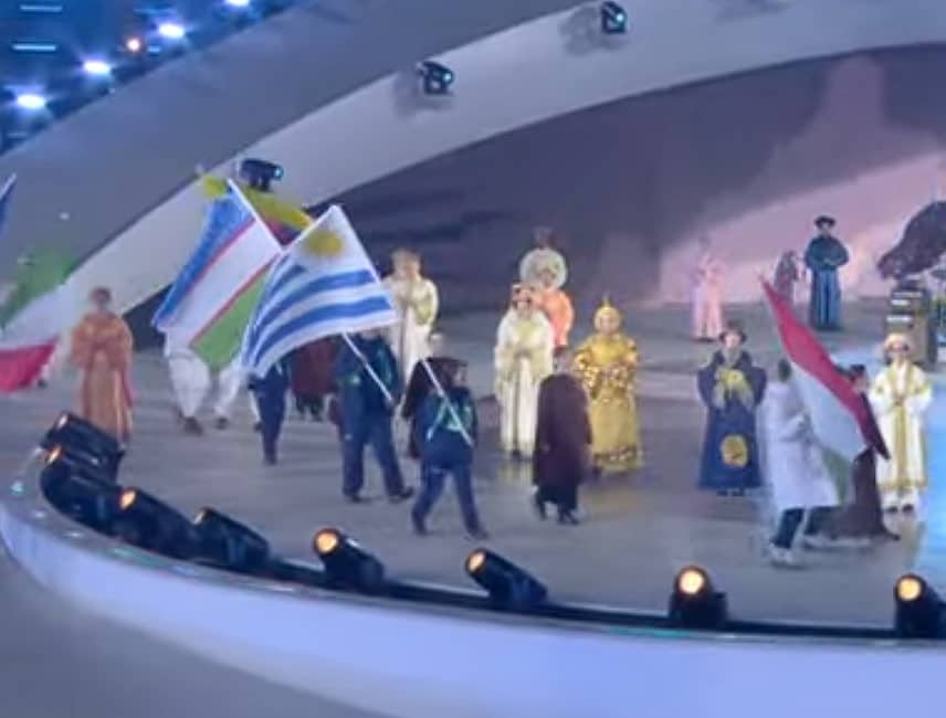 После художественной части спортсмены с национальными флагами прошли по стадиону и кружили вокруг сцены, отмечая завершение соревнований.