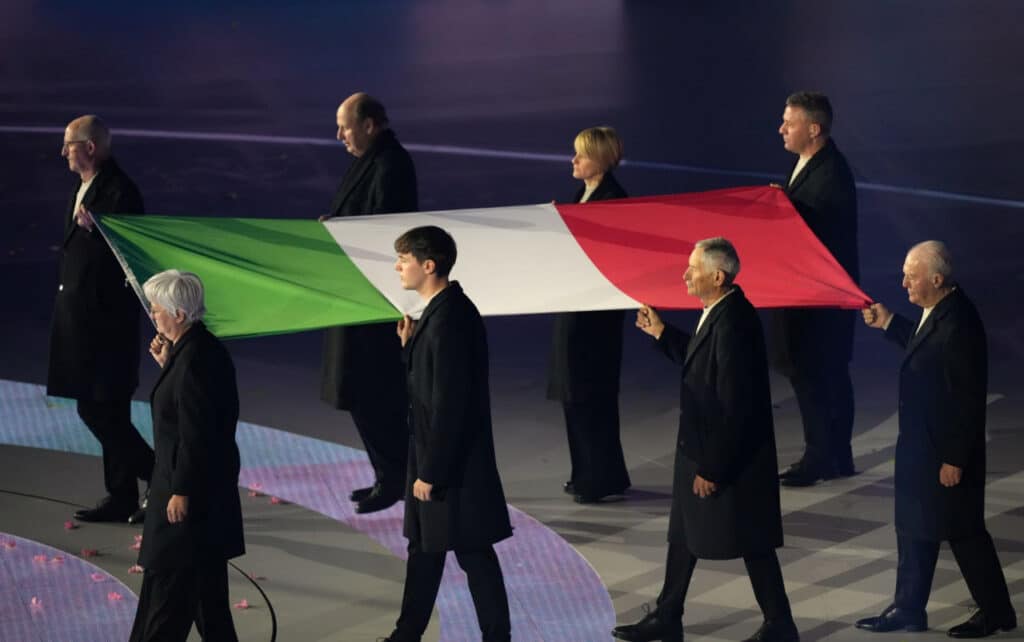 Знаменосцами Италии стали Лиза Виттоцци и Давид Гиотто. Их появление стало одним из центральных моментов парада.