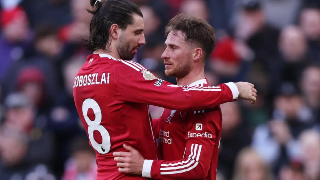 Ван Дейк забил второй мяч после подачи Собослаи. Затем Мак Аллистер замкнул комбинацию после углового. К перерыву счет стал 3:0.