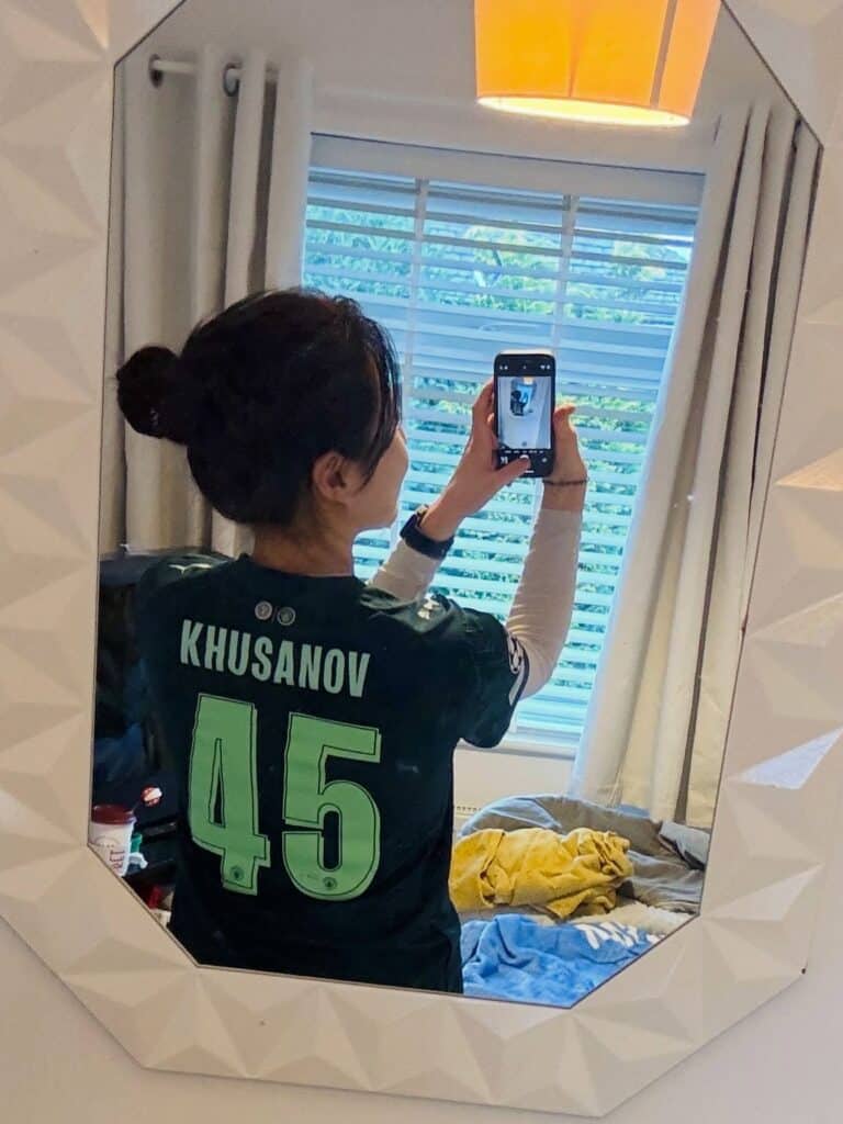 Кореянка поздравила футболиста с днем рождения, сопроводив публикацию фотографиями в футболке игрока с номером 45.
