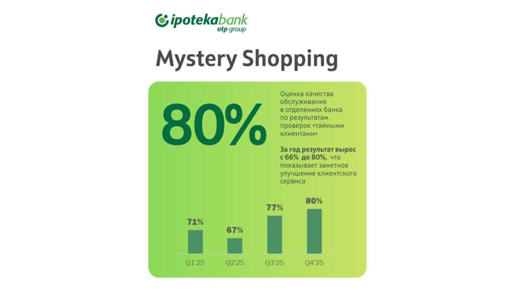 Банк также значительно усилил качество сервиса: индекс клиентской лояльности (NPS) вырос с 28% до 66,8%, а показатель Mystery Shopping улучшился с 66% до 80%.