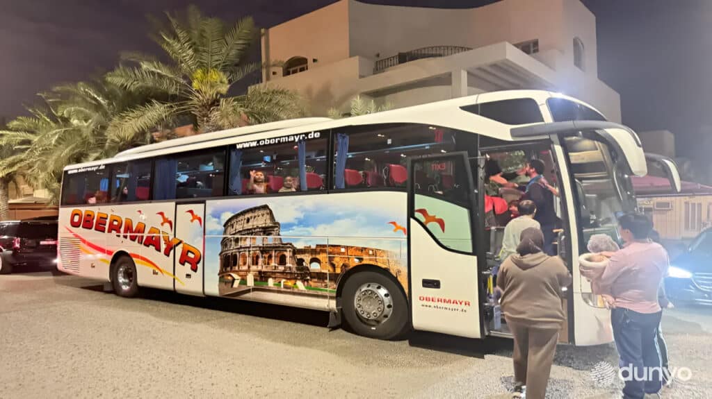 Автобус с узбекистанцами прибыл в аэропорт Эр-Рияда после 12 часов пути. Два сотрудника дипмиссии сопровождали пассажиров для помощи при пересечении границы.