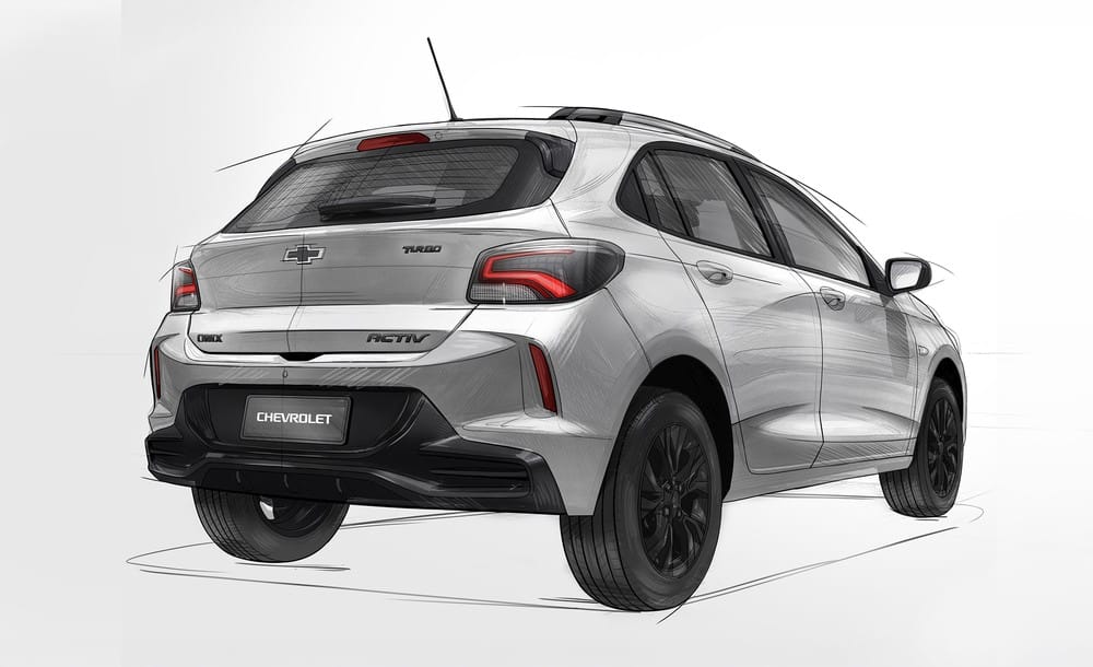 Новый Onix Activ отличается от обычного хэтчбека увеличенным дорожным просветом и рядом стилистических штрихов, подчеркивающих его кроссоверный характер. По опубликованным эскизам видно, что автомобиль получил рейлинги на крыше и черные корпуса зеркал. Заднюю часть дополнят новый диффузор и фирменный шильдик Activ.