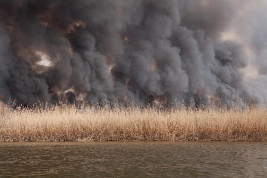 Камыш там специально поджигают, чтобы уменьшить количество насекомых и снизить риск распространения инфекций.