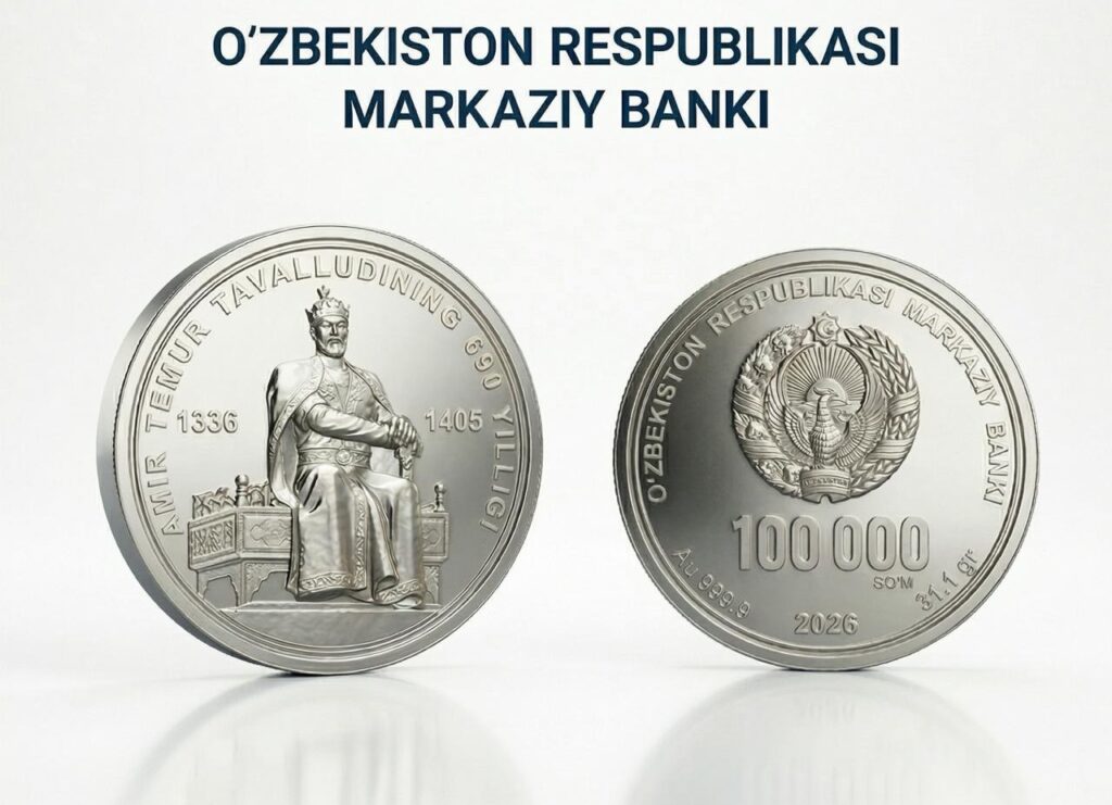 К 690-летию со дня рождения Амира Темура в Узбекистане выпустили памятные монеты из чистого серебра, сообщили в Центробанке республики. Их номинал — 100 тыс. сумов.