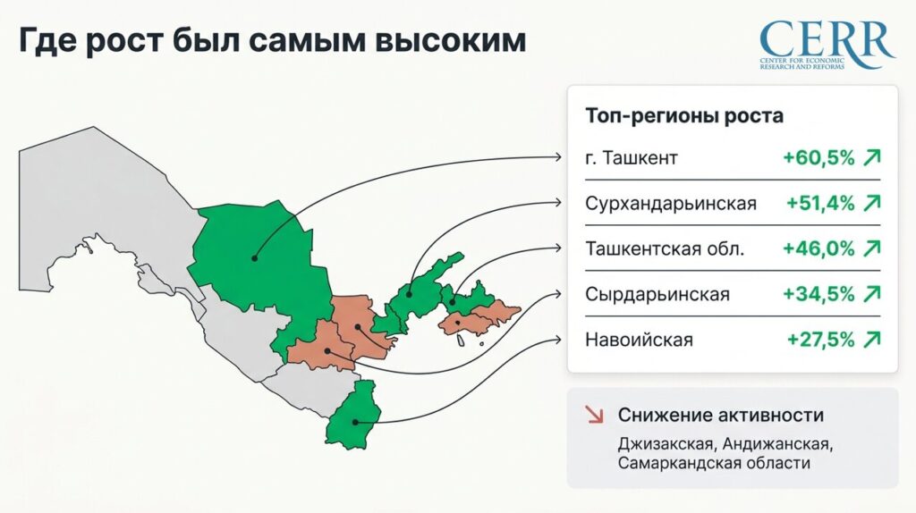 За месяц наибольший рост продаж автомобилей отмечен в столице — 60,5%, в Сурхандарьинском и Ташкентском регионах — 51,4 и 46% соответственно.