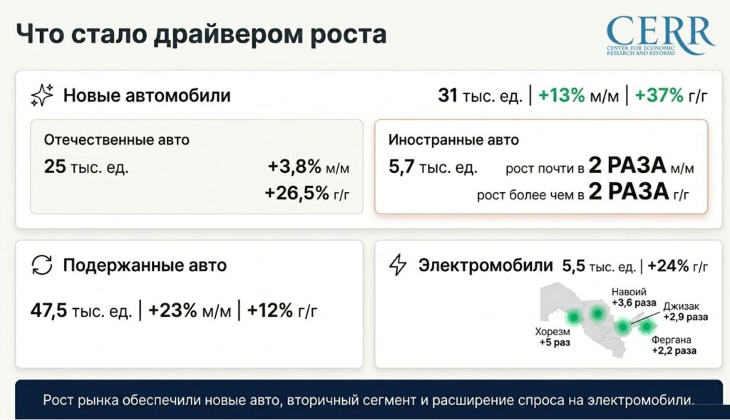 Продажи новых машин, выпущенных в Узбекистане, достигли 25 тыс., что на 26,5% больше, чем годом ранее.