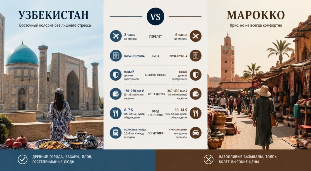 Россияне сравнили Узбекистан и Марокко: где дешевле и комфортнее отдыхать
