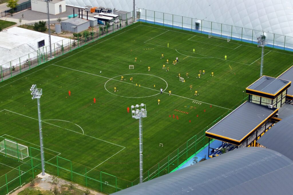 Также построен крытый футбольный манеж, чтобы тренировки проходили круглый год.