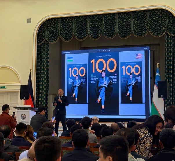 The event began with the presentation of Otabek Mahkamov’s book «100 Serendipitous Encounters on the Way to the Top», followed by a meaningful discussion. Photo: Uzsu.germany Instagram