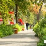 Tall trees create natural shade over wide pavements, making it comfortable even in summer. Older residential buildings stand next to modern cafés and restaurants, many with outdoor terraces. Festivals and events are often held here, and many cafés stay open late, so the street remains lively well into the night.