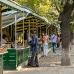 Book stalls stretch along the alley, and vendors sell old coins, medals and collectibles, giving the place a slightly vintage atmosphere. Tall trees provide shade, making it popular for daytime walks. In summer, people even come here for small picnics. It’s a relaxed corner of the city that shows a quieter, older side of Tashkent.