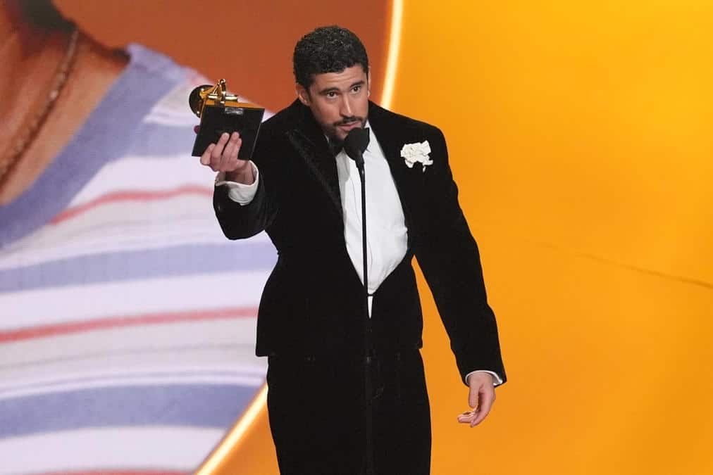 Puerto Rican superstar Bad Bunny made Grammy history after Debí Tirar Más Fotos became the first Spanish-language album to win Album of the Year. Accepting the award in Spanish and English, an emotional Bad Bunny dedicated his win to immigrants and to Puerto Rico, calling it a moment for «all the Latinos in the entire world.»