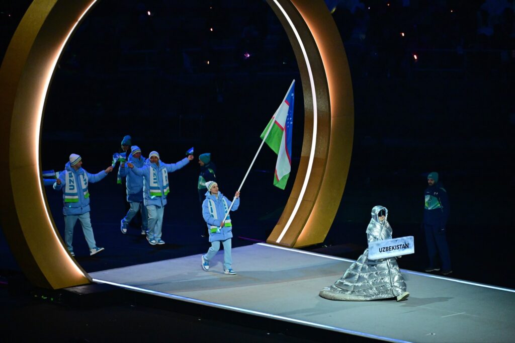 Uzbekistan is represented at the Olympics by two athletes. Short track speed skater Daniil Eybog served as the national flagbearer, carrying the Uzbek flag at San Siro during the parade of nations. Olympic qualification was originally secured by figure skating pair Dmitry Chigirev and Ekaterina Geynish, alpine skier Medet Nazarov in slalom and giant slalom and Eybog in the 500 metres short track.