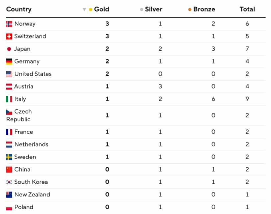 As events continue throughout the week, the medal standings are expected to shift rapidly, with more than 80 teams competing across disciplines at the Milano Cortina Games.