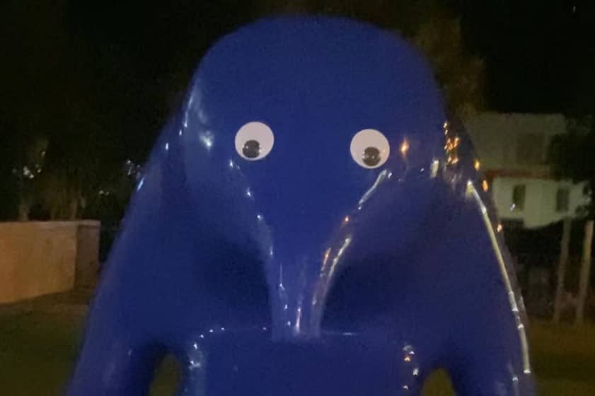 The sculpture, titled Cast in Blue and unveiled last July, is popularly known as the Blue Blob. Local residents had mixed opinions on the piece due to its design and cost. Mayor Lynette Martin described the act of placing the googly eyes as «wilful damage to a valued public artwork» and noted that removing the stickers would be expensive and could further harm the sculpture.