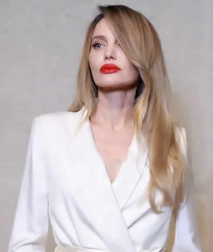 The Oscar-winning actress attended the event during Shanghai Fashion Week, marking her role as a beauty ambassador for Tom Ford. Jolie appeared in an elegant ivory outfit paired with bold red lipstick and debuted a lighter, icy blonde hairstyle — a noticeable change from her usual look.