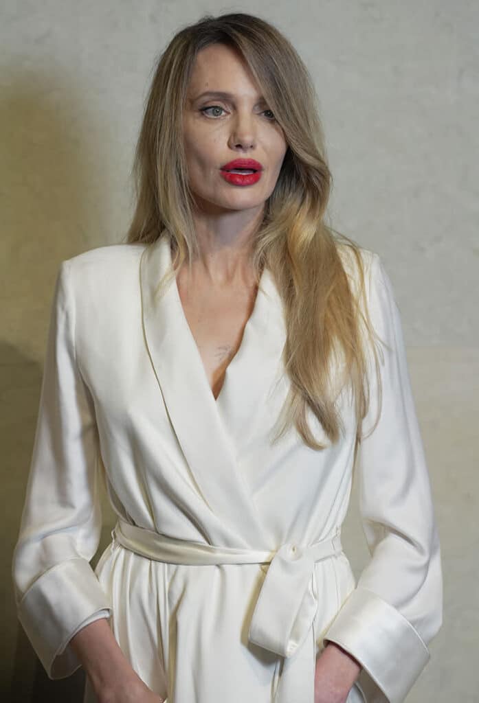 The Oscar-winning actress attended the event during Shanghai Fashion Week, marking her role as a beauty ambassador for Tom Ford. Jolie appeared in an elegant ivory outfit paired with bold red lipstick and debuted a lighter, icy blonde hairstyle — a noticeable change from her usual look.