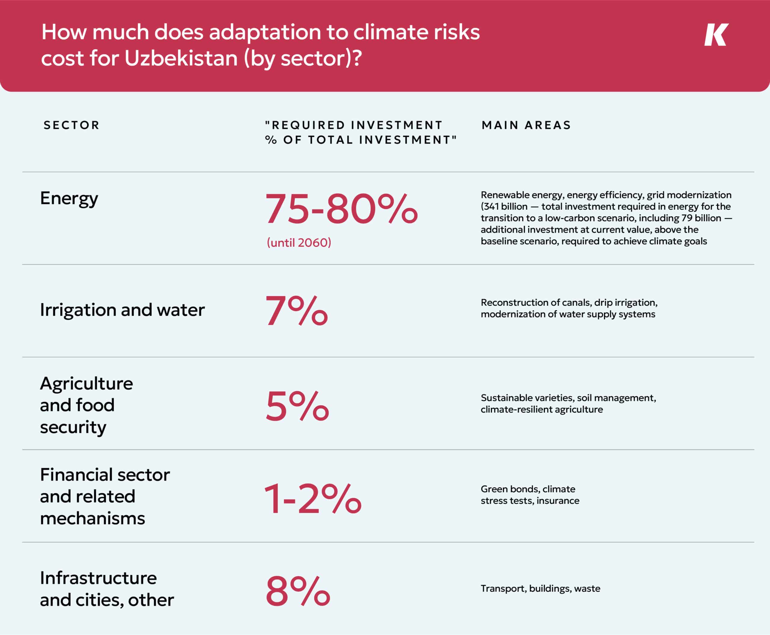 How much does adaptation to climate risks cost for Uzbekistan (by sector)?