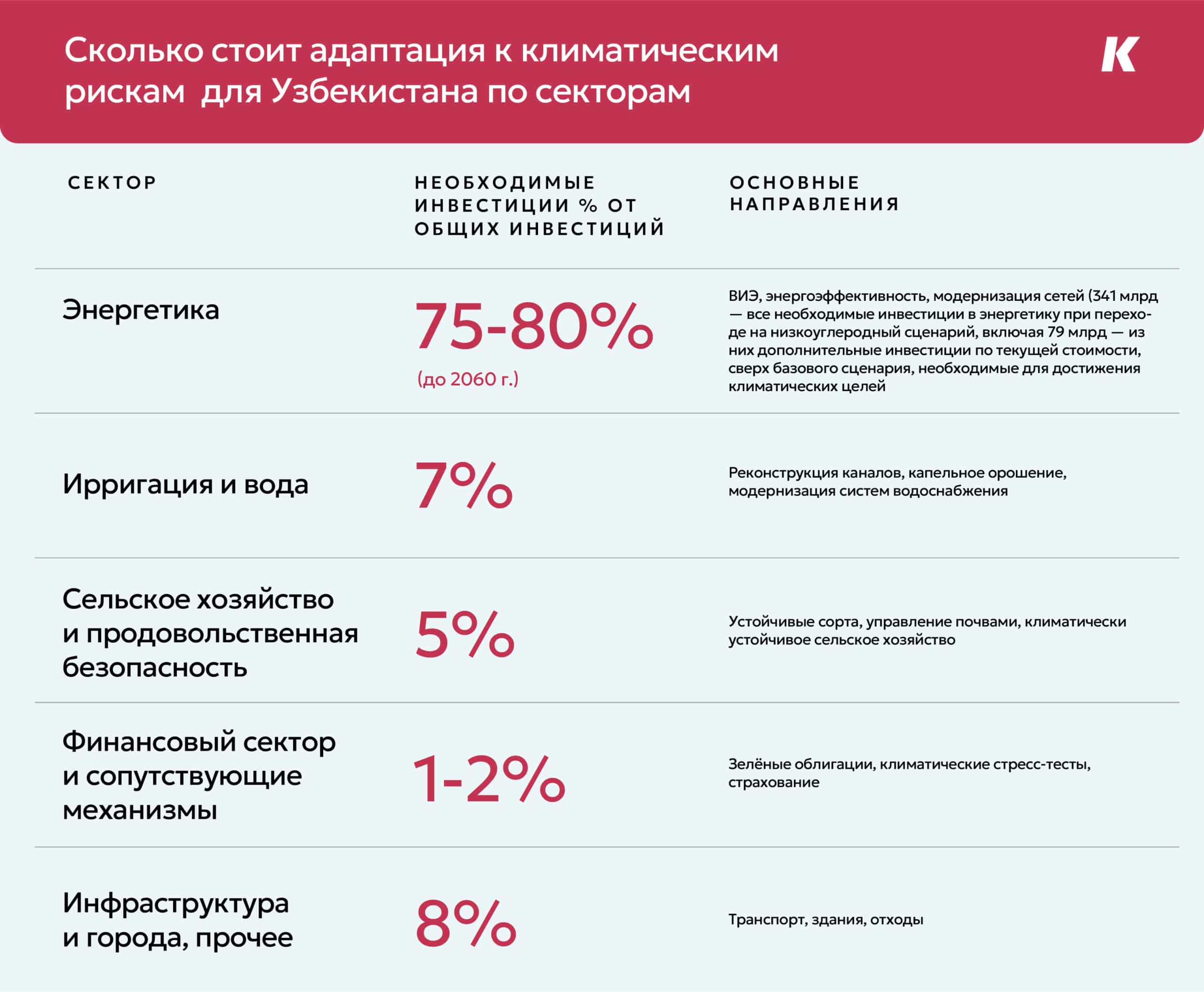 Сколько стоит адаптация к климатическим рискам для Узбекистана (по секторам)?