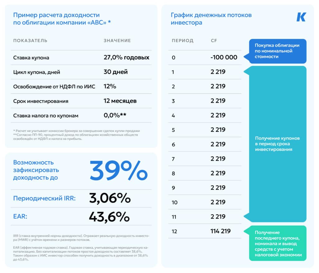В условиях снижения ключевой ставки и уменьшения доходности депозитов (по данным ЦБ — до 20,7% для физических лиц), облигации, приобретенные через ИИС, позволяют зафиксировать доходность до 39% годовых на срок до одного года.