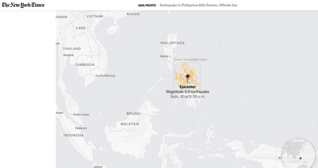 Filippinning markaziy qismida kuchli zilzila sodir bo‘ldi. New York Times nashrining yozishicha, hodisa oqibatida kamida 69 kishi vafot etgan. 150 dan ortiq odamlar jarohat olgan.