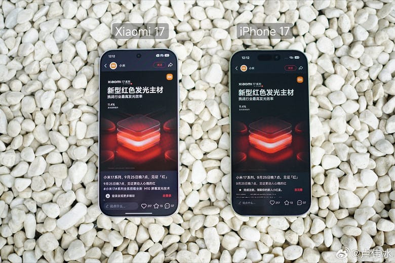 Xiaomi prezidenti Lu Veybing tomonidan Xiaomi 17 Pro va iPhone 17 ekranlari taqqoslandi. Bu haqda u Weibo tarmog‘ida ma’lum qildi.