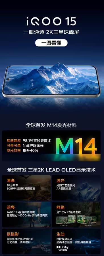 iQOO kompaniyasi tomonidan taqdim etiladigan yangi iQOO 15 smartfoni haqida batafsil ma’lumot berildi. Bu haqda Weibo tarmog‘ida ma’lum qilindi.