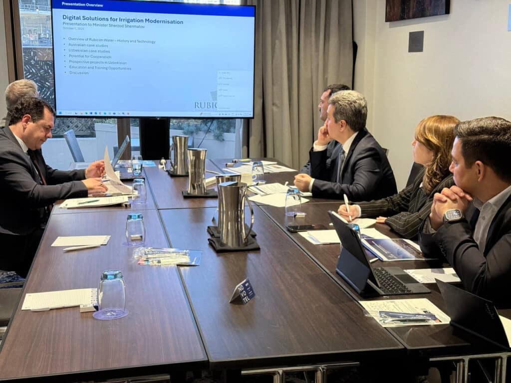 O‘zbekiston Raqamli texnologiyalar vazirligi delegatsiyasi Avstraliyada Rubicon Water kompaniyasi vakillari bilan hamkorlik uchrashuvi o‘tkazdi. Bu haqda Raqamli texnologiyalar vazirligi ma’lum qildi.