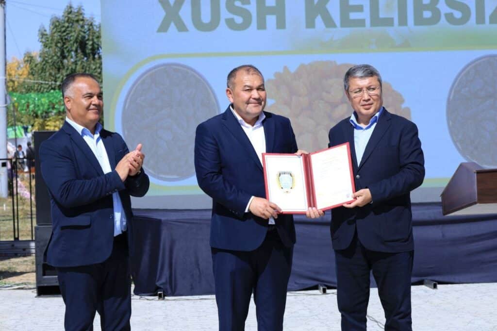 Tadbir yakunida Adliya vaziri Akbar Toshqulov «Samarqand mayizi» geografik ko‘rsatkichi ro‘yxatidan o‘tganini tasdiqlovchi hujjatni viloyat rahbariga topshirdi. Shuningdek, «Qo‘shrabot mayizi» tovar belgisi guvohnomasi ham tuman hokimiga taqdim etildi.